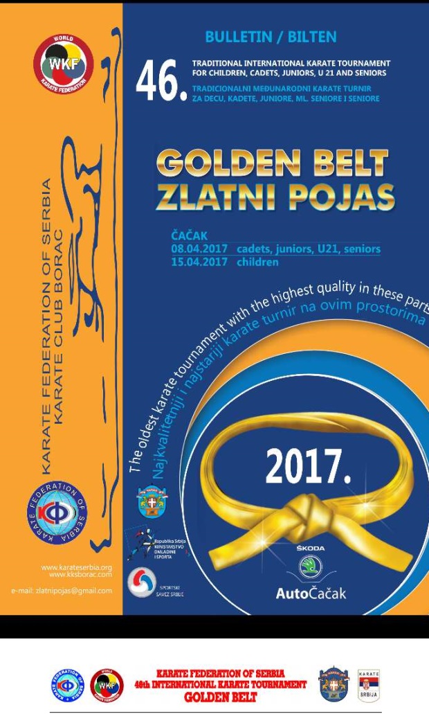 U Čačku se ovog vikenda održava tradicionalni Međunarodni karate turnir pod nazivom "Zlatni pojas Čačka". Na ovoj manifestaciji nadmeću se kadeti, juniori, seniori do 21 godine i početnici.