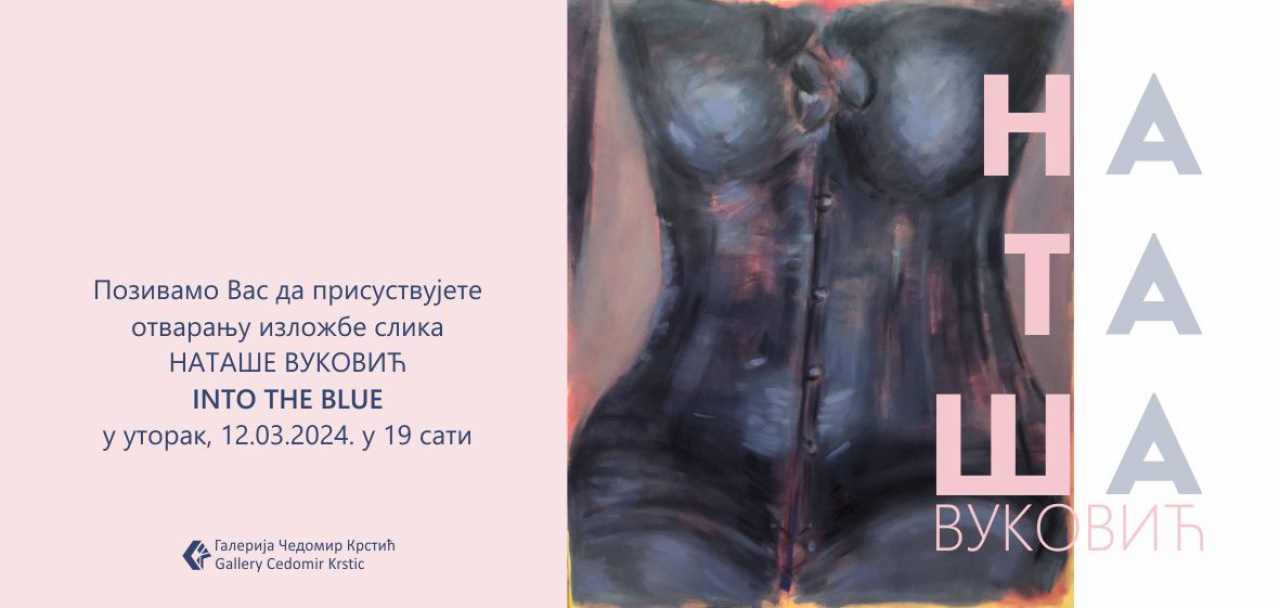 U Galeriji "Čedomir Krstić" naredne nedelje biće otvorena izložba slika autorke Nataše Vuković, pod nazivom "Into the blue". Otvaranje izložbe je u utorak 12. marta, sa početkom u 19 časova.