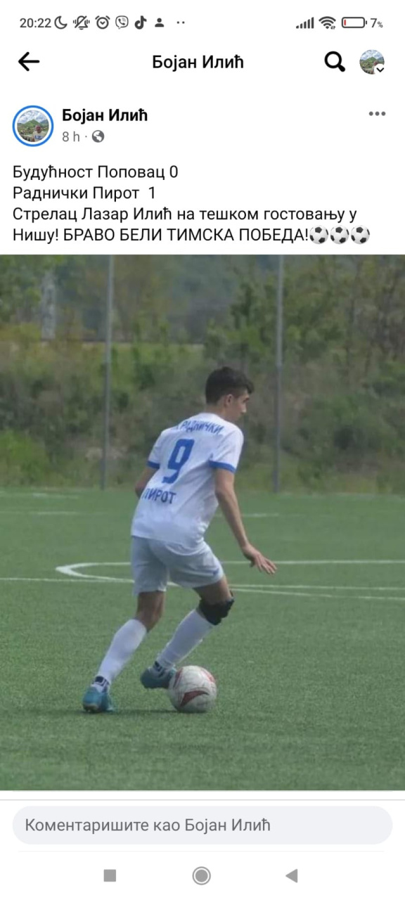 14. apr 2026. 17:45 Omladinska liga FS RIS, 22. koloPomoćni teren Stadiona "Dragan Nikolić"Pirot: Radnički - Radnički (Niš) 1:2 (0:0)Radnički Pirot: Jovanović, D. Rančić, Mančić, Denčić, Aleksić, Nakov, Ćirić, Lu....