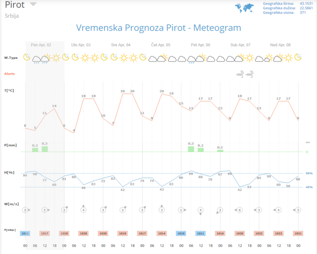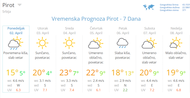 Izgledi vremena u Srbiji za narednih sedam dana, do 9. aprila: