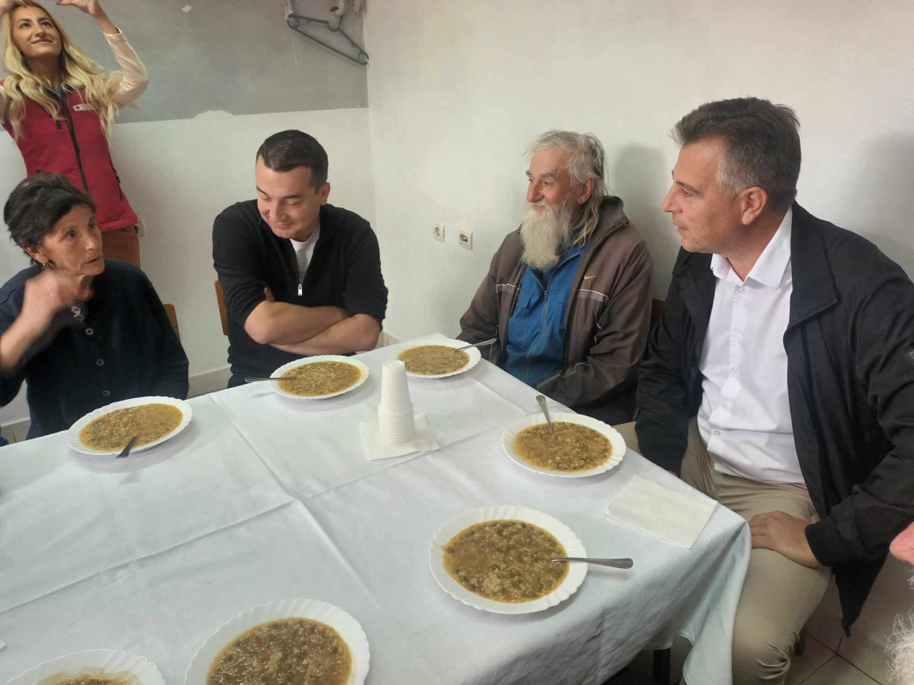 Vasić ručao sa korisnicima Narodne kuhinje. Obećao bolje obroke već od novembra