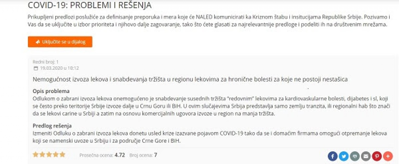 Otvorili smo i stranicu za pitanja privrede o primeni propisa tokom vanrednog stanja na koje odgovara stručni tim NALED-a i ti odgovori su javno dostupni svim privrednicima u Srbiji.