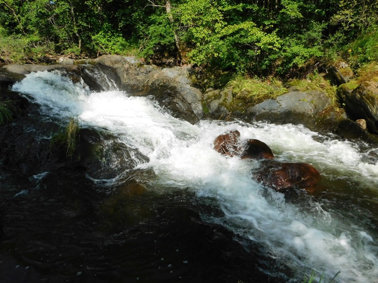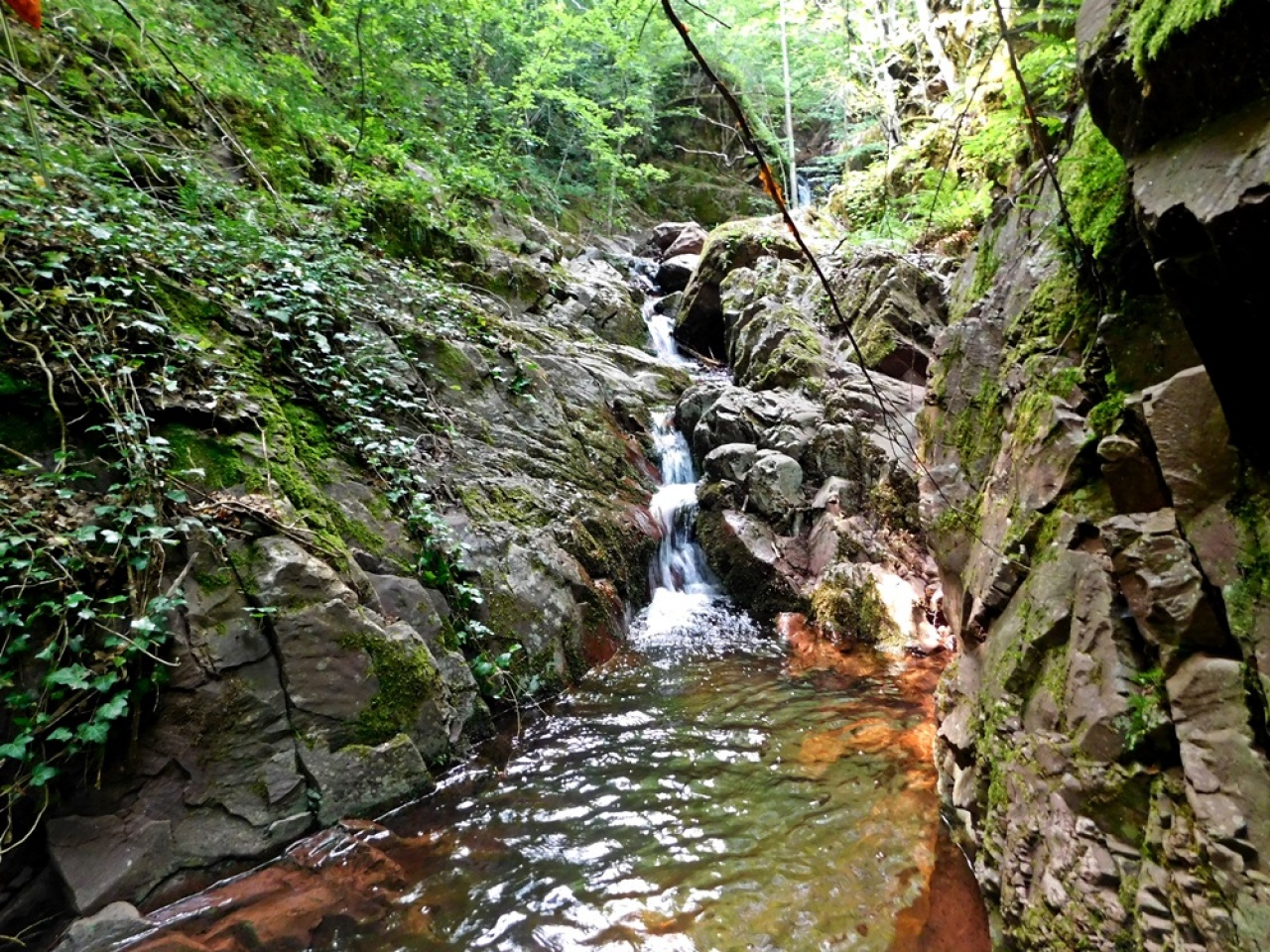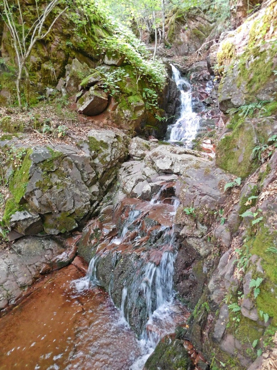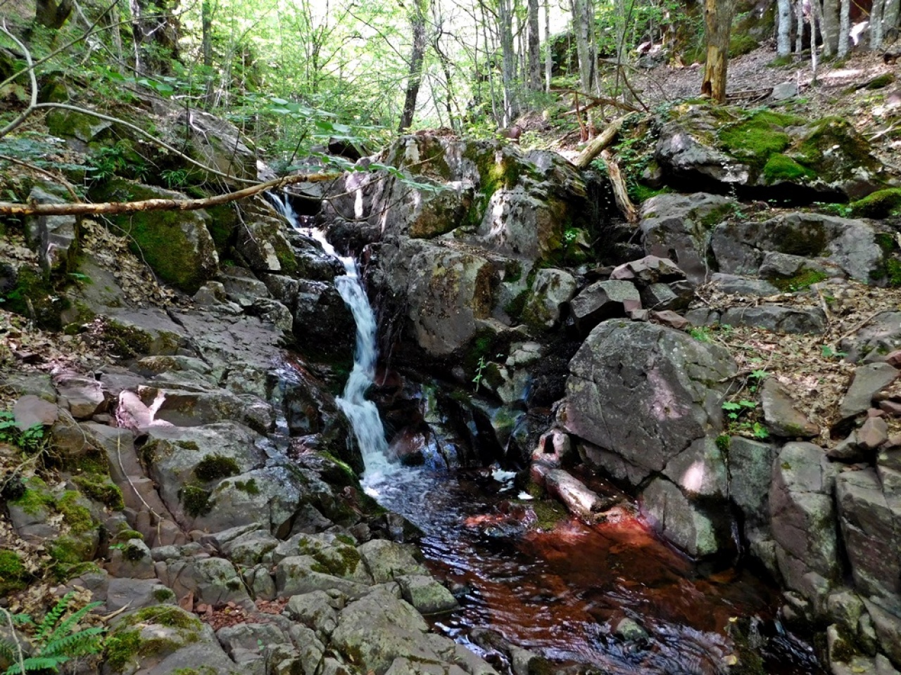 Nakon nekog vremena eto nam neke utabane stazice, pratimo je i ona nas odvodi sve do ušća dva potoka. Taj drugi nama treba tako da krećemo uzvodno u potragu za Šugljinim skokom. Penjemo se uz puno manjih kaskada, naravno sve to drugačije izgleda sigurno u proleće kada je velika voda, ali je i kretanje i penjanje uz klizavo kamenje verovatno teže. Pošto je nama prvi put sve deluje iovako lepo i zanimljivo. Nakon nešto više od pola sata veranja kroz dol uz povremeno branje pečuraka sa strane nailazimo na tesnac. Da li je tu vodopad? Da tu je odmah iznad ali da bi došli ispod njega trebalo je savladati taj deo preko velikog kamenja a pre toga pregaziti vir ispred. Nemamo vremena sada za tu avanturu pa tražimo najpogodnije mesto kako bi izašli na stene i videli vodopad odozgo. A gore iako malo vode prizor zaista lep, preko stene okružene sada gustom vegetacijom sliva se voda. Prilazimo polako što bliže ivici kako bi ga videli u celosti i fotografisali. Vodopad visine preko deset metara zvani Šugljin skok. Zašto se tako zove još nismo saznali. Iznad njega ima još vodopada ali to moramo obići neki drugi put jer za takav teren treba ipak malo više vremena a i oblaci su se povremeno navlačili i ne bi valjalo da kiša namokri stene pre nego sto se spustimo dole na put.