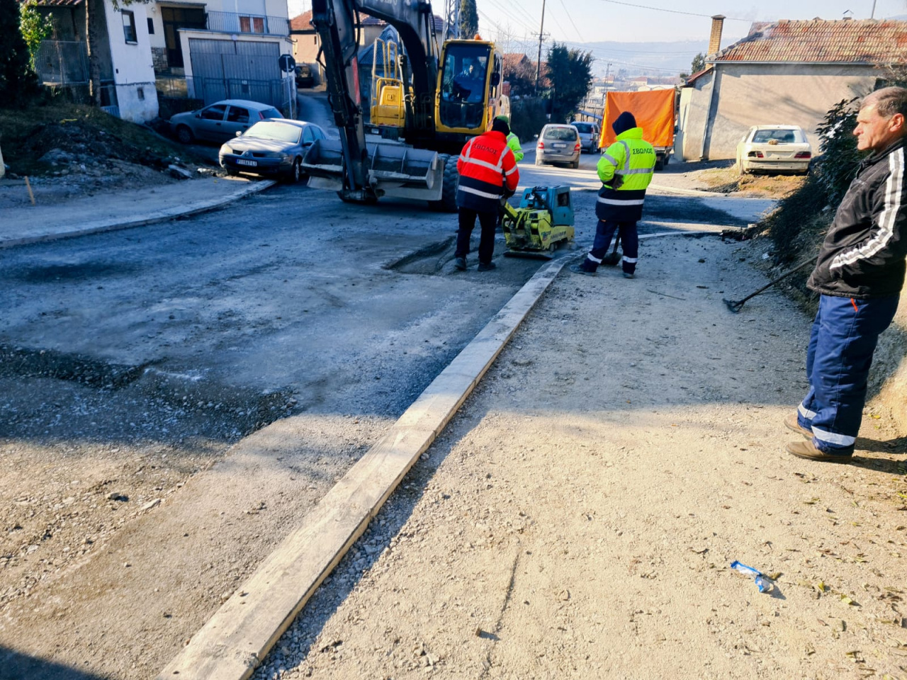 Kamion, teška mašina, radnici, svi na kolovozu! Zatrpavali su rupe pravouganog oblika.